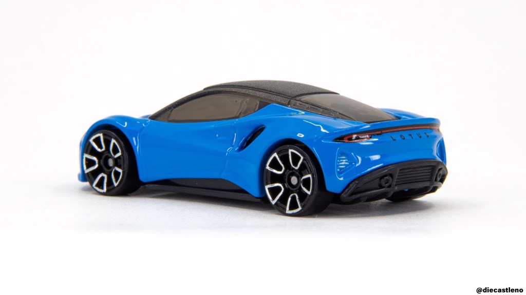 My favorite angle is the rear ¾, where the side of the car has an hourglass shape that makes it appear lightweight and sporty. The tail lights look great and are unusually crisp for a Hot Wheels, and I love the air vents below the rear lights. The Emira’s integrated ducktail spoiler adds a nice flair as well. Expect a full feature on this model in the near future.