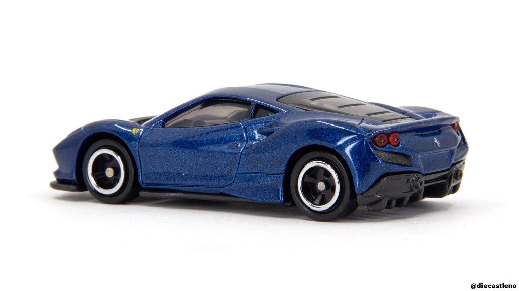 The highly detailed back is definitely the highlight of the Tomica though. Where the Hot Wheels lacks any tampo detailing, the Tomica has a prancing horse on the back and the Ferrari script at the base of the engine cover. These tail lights are gorgeous too, as they are a separate piece which makes them really stand out! Just like the front end, there is a ton of depth to the vents and spoiler, as well as the exhaust tips that stick out from the rear valence.