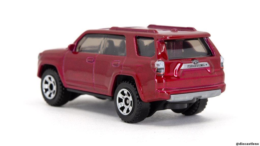 Speaking of crisp lines, look at those door handles! The 4Runner has huge, chunky door handles, and they are impressively well replicated here. I also quite like the rather squared off fender flares, which fit the Matchbox’s accurately-sized wheels perfectly. I much prefer this look to the lifted 4Runner with oversized wheels that Hot Wheels put out. While these are just Matchbox’s normal truck wheels, they do a shockingly good job of replicating the 4Runner’s factory wheels!