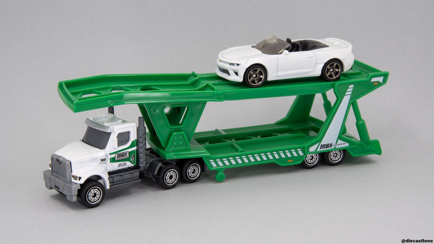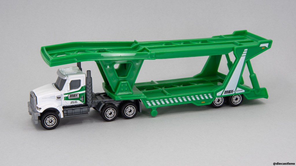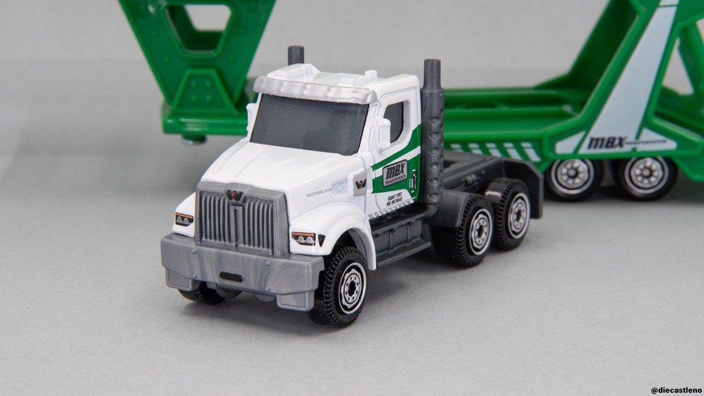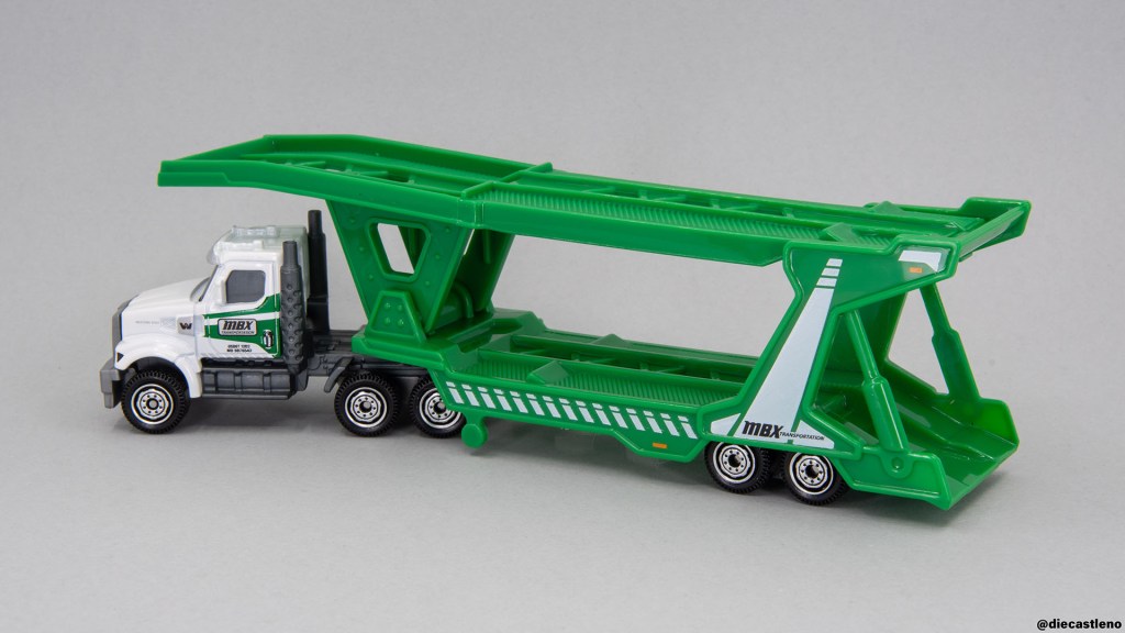 This new Western Star Cab & MBX Auto Transport Trailer is a true greatest hits special, featuring the car carrier trailer (this time in a much more realistic green) paired with a licensed Western Star 49X! I’ve gushed at length over this Western Star cab before, so I’ll spare you the full review, but suffice it to say it’s my favorite Convoy cab. It’s fully detailed and well proportioned, with a look that’s both tough and modern at the same time. The lack of an interior is a bummer, but it seems to allow for full printed detailing, which is a trade I’m willing to make.