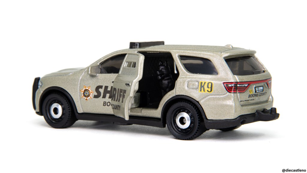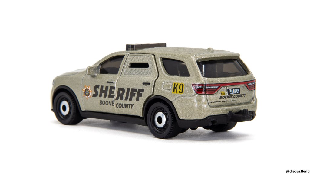 If you’re a Matchbox collector, odds are you’re also a fan of diecast police cars. When the Dodge Durango first came to the Matchbox line a couple years ago, I was surprised to see a civilian version rather than a squad car. I didn’t have to wait long for a police version, though. Matchbox just released this ‘18 Dodge Durango as a Moving Parts model wearing the familiar Boone County Sheriff livery.