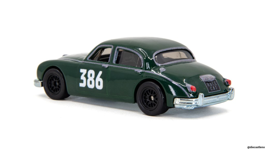 The Jaguar MK1 isn’t a car I ever would have thought to ask for in diecast, but the execution here is impressive. This looks like a perfectly restored vintage race car, complete with black tape over the headlight lenses and racing numbers on the side. The chrome base allows for proper chrome bumpers (like an old-school Matchbox) and the silver trim around all the windows is a nice touch. Even these wheels, which I would normally find objectionable, feel like a perfect fit for this car. Perhaps the only weak point is the leaping cat hood ornament, which looks like little more than a slight bump at the top of the grille. Even premium-line Hot Wheels have to stand up to play from children, so what can you do?