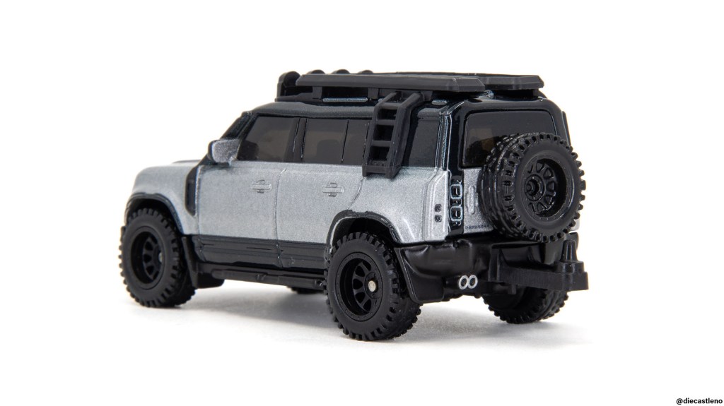 Apart from that comically unrealistic trailer hitch at the back, the rear of the Defender is as excellent as the rest. Regular readers will know my affinity for exhaust detailing, so these silver quad exhaust tips immediately drew my eye. I can practically hear the muscly V8 idle. I’ve also always liked when British cars use clear brake light lenses, so I’m glad to see the clear units on this diecast version as well.