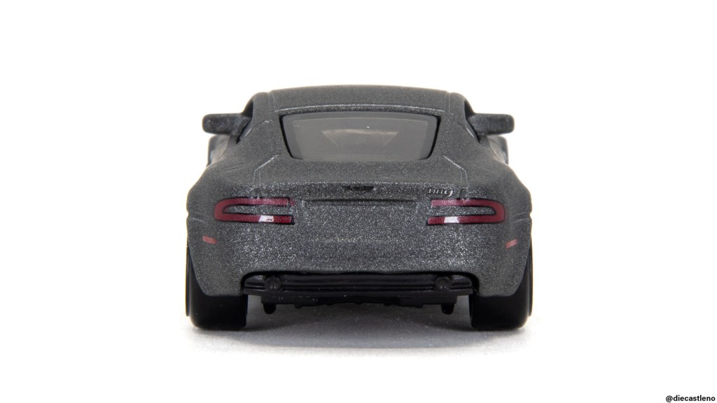 I believe my problem with this model is less with the casting itself, and more with the execution of this particular example. These stance-friendly wheels with their stretched tires just don’t match the character of an Aston Martin, and they make the ride height look higher than it should be. This matte-finish charcoal colored paint is also a bit unbecoming for an Aston Martin, as it looks more like it belongs on a BMW M car or perhaps just a plasti-dipped drift missile.