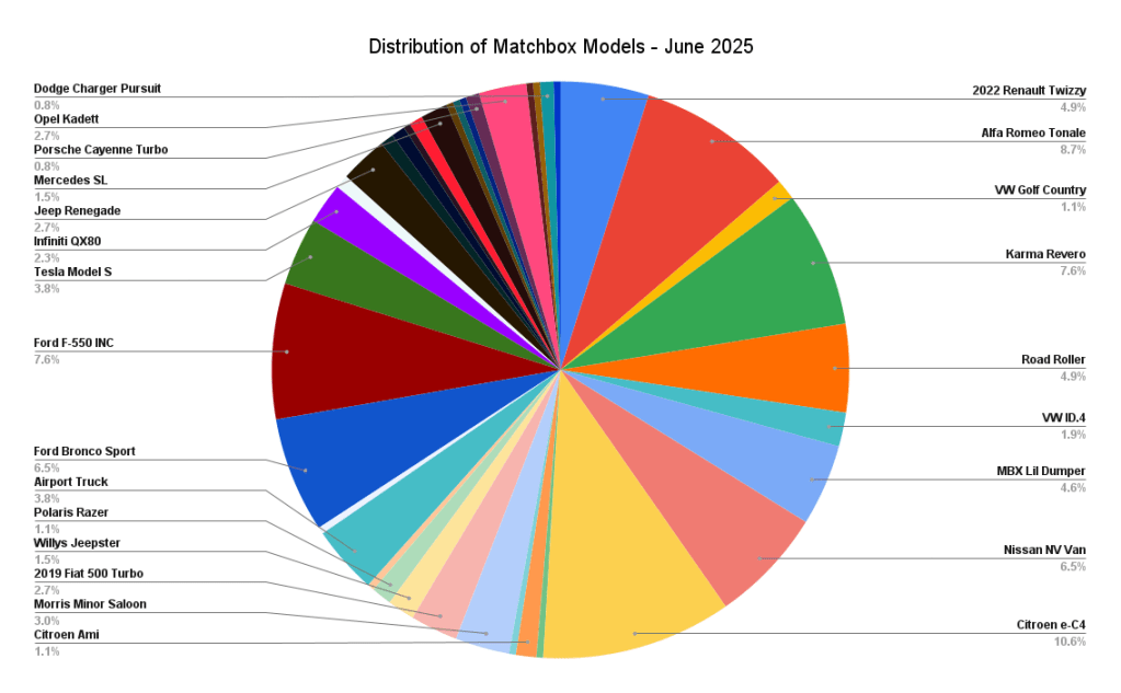 All this seems obvious to me, and maybe it does to you too, but it’s important to remember that the people working at Matchbox also want the brand to be successful. I did this census of my local pegs not to hate on the Matchbox team, but to try to illustrate a frustration I’ve been feeling with the assortments lately, and to use hard data to back up my gut feelings. Years ago, collectors used the social media hashtag “mymatchboxpegs” to help the team at Matchbox understand the situation at their local stores, and I intend for this analysis to serve as an even more in-depth version of that collective effort. I encourage you to do the same: go to your local stores, find out what’s on the pegs, and share your findings so we can help the Matchbox team hone their product assortments and, by extension, help them deliver more of the models we want to see. Isn’t that what we all want anyway?