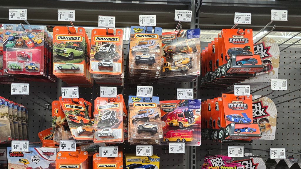 Since Matchbox changed their packaging for 2025, it was pretty easy to count the number of 2024 and 2025 models at each store. In total, nearly 38% of all models on the pegs were 2024 or older. Considering that we’re in June of 2025, that indicates a worryingly slow inventory turnover rate, which big box stores don’t tend to appreciate. All Matchbox mainlines share the same UPC, so the inventory turnover may look artificially better from the rapid turnover of desirable models, but that can only happen if desirable models are on the pegs in the first place.