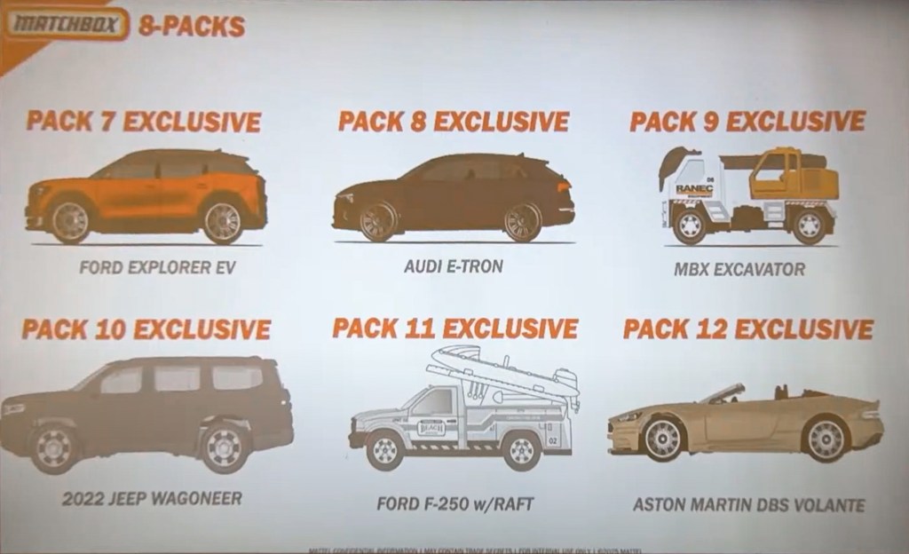 However, there was one thing that worried me throughout the presentation…Matchbox is introducing a new set of large truck wheels for 2026, and they were popping up a lot.  I’ve consistently praised Matchbox over the last several years for their realistically proportioned SUVs and pickup trucks, and I noticed several castings that are getting these new giant wheels.  That’s worrying, because I’ve always been bothered by the way Hot Wheels ruins all their truck castings by making them look like monster trucks rather than the regular trucks you’d see driving around on the street.  I hope that Matchbox’s excitement over these new wheels fades after this year, and that we don’t see these wheels start to dominate every new SUV and pickup casting.