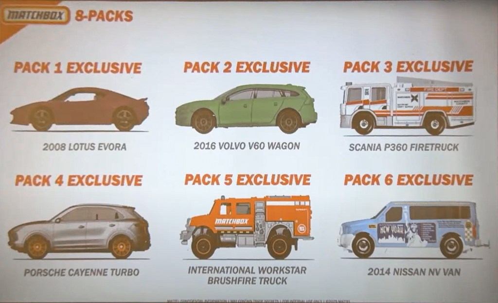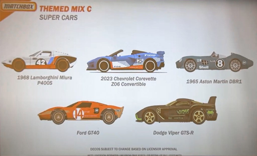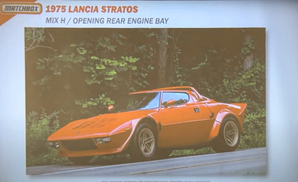 With the departure of Abe Lugo from the Matchbox team, the presentation was a little different this year.  Gone was the “sizzle” video, replaced by a more traditional slideshow with renders of the cars wearing their final decos (or generic images for models with WIP decos).  Overall, I like this change – it gives us a better sense of what the final model will look like and it tells us what mix the model will be released in, so we know how long we’ll have to wait.  So, without further ado, let’s jump right in!