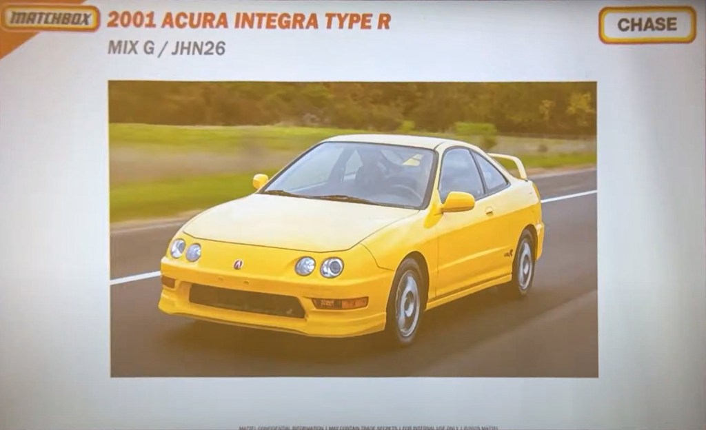 There’s no sugarcoating this one – I have absolutely no idea what Matchbox was thinking when they made the Integra Type R a chase.  The original mainline version was so hard to track down that it functionally became a chase for most collectors, so reducing the numbers for the recolor feels almost insulting.  The chase is an unknown color at this time, and good luck to anyone who’s trying to track one down…