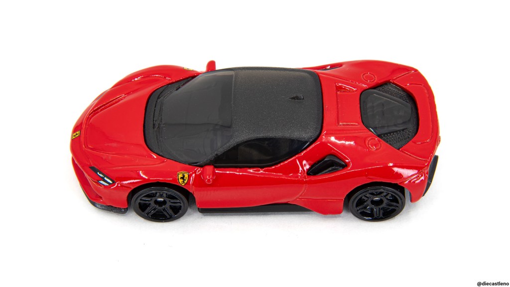 With such a limited budget for printed detailing, Hot Wheels designers have increasingly started to rely on the different colors of the windshield, base, or interior piece to form color breaks in their castings, as seen on the recent McLaren W1. That technique is used to great effect on the SF90, allowing the intakes on the quarter panels to be black and the engine cover to be a tinted window, all without needing any printed detailing. That’s clever design, and I love when the Hot Wheels designers push the limits of detail at the mainline price point.
