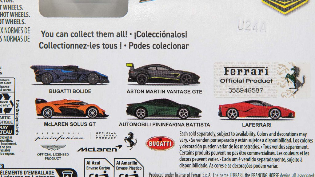 In fact, if there’s anything worthy of complaint, it would be the rest of the EuroSpeed series in which this Ferrari is being released. I can’t help but feel like this is a set with one star and four pegwarmers. I like hypercars – they’re among my favorite cars that Hot Wheels makes – but the choice of European supercars included in this set feels deliberately obtuse. Cars like the Pininfarina Battista and Bugatti Bolide are cool in their own right, but there are so many great Hot Wheels hypercar castings that would have been much more appealing to pair with the new LaFerrari. Cars like the new CCXR and the retooled Bugatti Veyron immediately come to mind, but it also would have been a good chance to give established premium models like the McLaren Senna or Lamborghini Aventador some exciting new color options. The casting selection Hot Wheels chose just feels…lazy, I guess? Then again, Hot Wheels does have a history of inexplicable exotic casting choices.