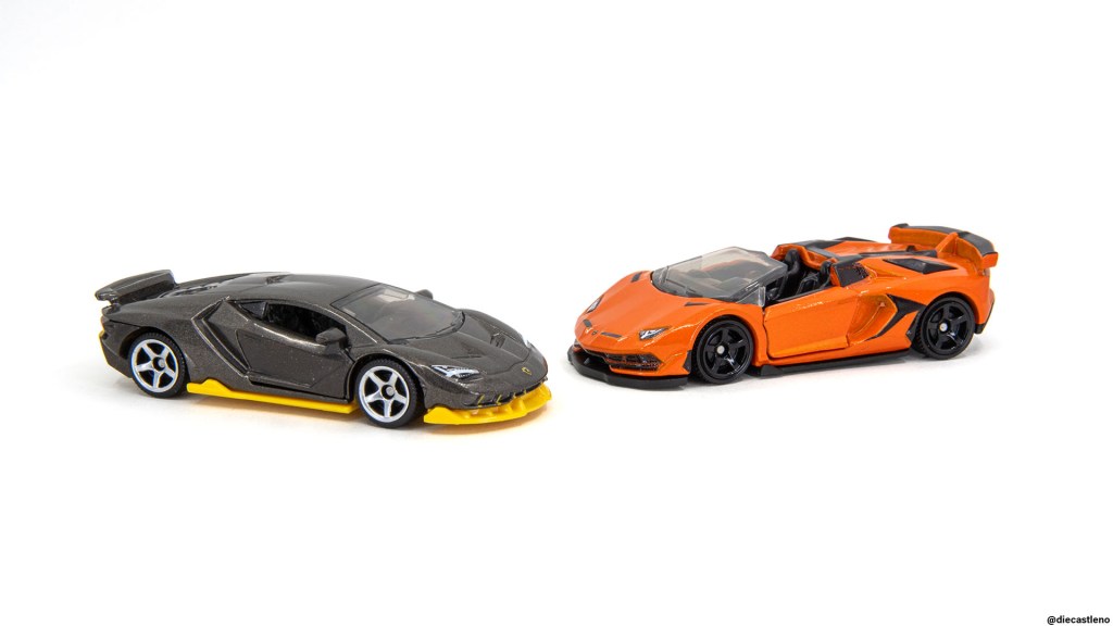 However it happened, the Matchbox designers absolutely made the right call with this Moving Parts version, and that’s immediately apparent when you put it next to the Hot Wheels Sterrato. The extra detailing makes the Matchbox look leagues better than the Hot Wheels, and that’s before you consider the differences in the castings. Where the Hot Wheels version has always felt too small, the Matchbox Sterrato feels perfectly scaled within the loose scaling rules that govern the Matchbox lineup. It’s smaller than the “big Lambos” in the lineup, but it’s bigger than small sports cars like the Miata and similarly sized to the 911…which feels about right. It’s also clear that Matchbox was burned by the too-short nose of the Aventador SVJ casting, because this Huracan features a much more supercar-appropriate hood rake, and it makes the Hot Wheels version feel cartoonish by comparison.