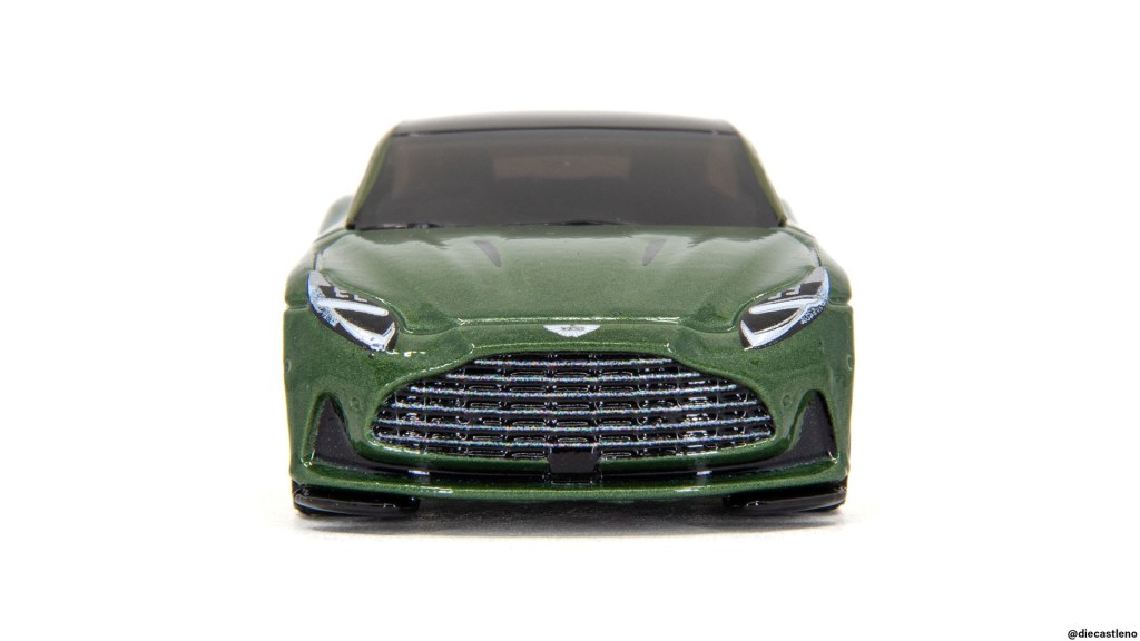 One of the DB12’s most distinctive styling features is the return of the massive Aston Martin corporate grille, and it’s fully detailed here, with the excellent printing alignment that only Matchbox’s Thailand factory seems to be capable of. Even the radar sensor at the bottom of the grille is detailed black with perfectly aligned printing!