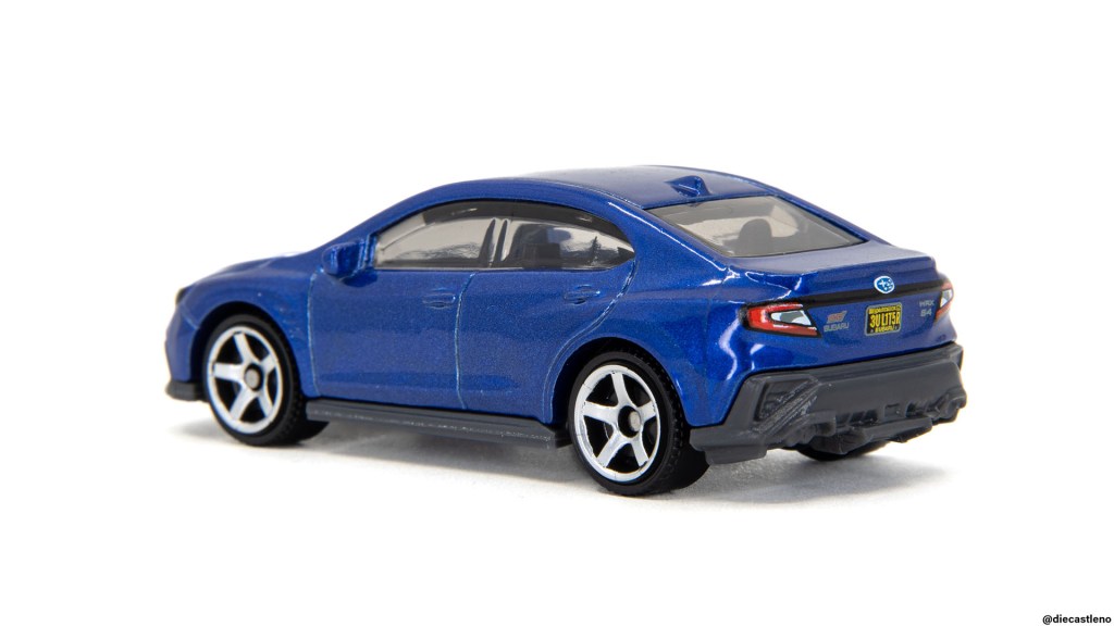 It’s hardly controversial to say that I don’t like the look of the plastic body cladding on the current generation WRX, given the near universal disdain for that styling decision. Thanks to the limited detailing budget available on Matchbox mainline models, we get a chance to see how much better the WRX would have looked with body colored fender flares! It’s a massive improvement, making the car look sleeker and less SUV-like, which means this the rare case where I’m actually grateful for Matchbox’s limited detailing budget.