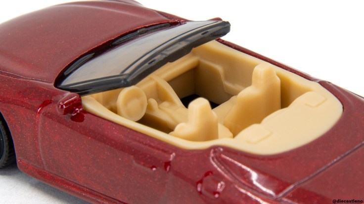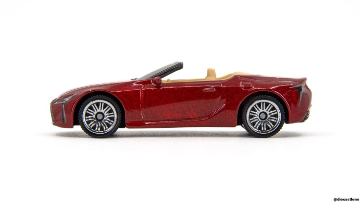 The same is true around back, where the brake lights are perfectly aligned and wrap nicely around onto the sides of the model, but they inevitably lack the infinity mirror effect of the real LC500. The Lexus and LC500 badges look great, and I appreciate that Matchbox even printed a black dot above the Lexus badge to represent the button to pop the trunk! The metallic red paint looks perfect for a luxury car like this, and I’m happy to see that a blue version is coming soon in the 2026 line!
