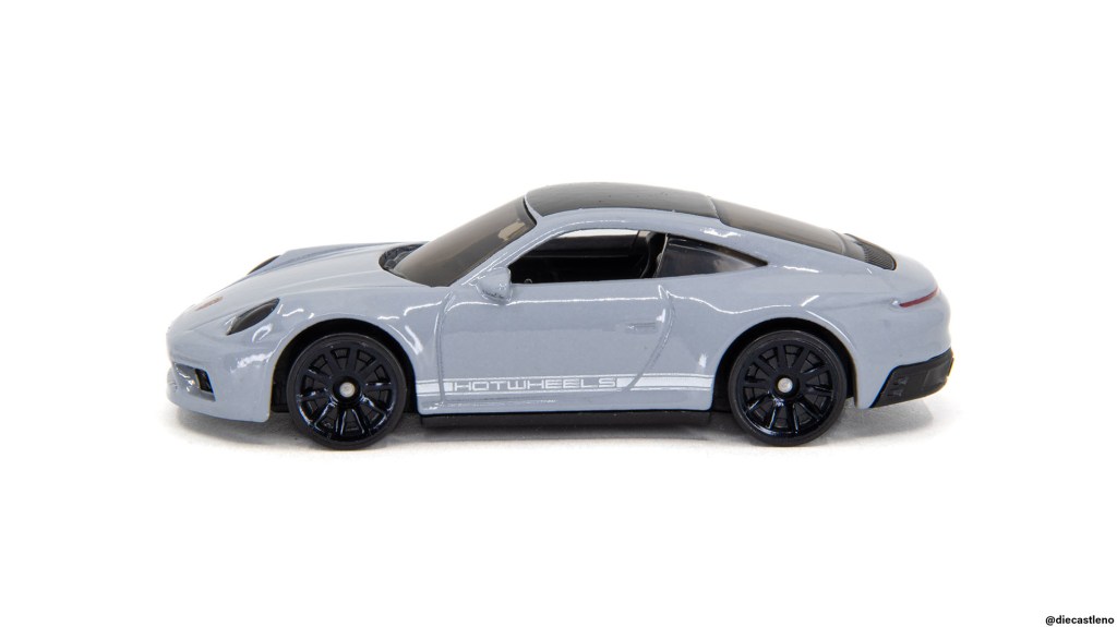 The chalk gray paint feels like a perfect fit for a new 911, and I love the way the white side graphics stand out against it! I’ve seen some complaints online about the fact that those side graphics say “HOT WHEELS” instead of “911 Carrera T”, but it doesn’t bother me in the slightest. I think it’s a cool little detail and I’m glad Porsche was willing to give Hot Wheels some artistic license. Also impressive is the way the rear lightbar wraps around onto the sides of the model (once again, very Matchbox-like).