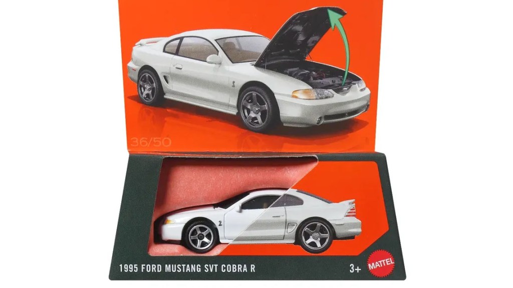 SN95 Mustangs seem to be having a moment in the diecast world right now. After decades as the least desirable Mustang model, it seems like they’re suddenly getting some love! This white Moving Parts Mustang with an opening hood follows hot on the heels of Hot Wheels’ RLC Cobra R. I wasn’t sure about the proportions of this Matchbox Mustang when we first saw the 3D print of it at the Gathering, but it looks far better now that it’s wearing its final deco. I’ll have to wait until I get one in hand to make a final judgement, but it certainly seems promising!