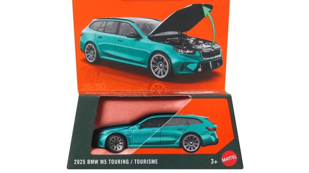 The 2025 BMW M5 Touring is easily the model I’m most excited for from this batch! I’ve been looking forward to this one ever since it was first teased at the Gathering last July, and I’m glad to see it debut in the best color possible! This metallic teal color is always the spec I picture a new M5 in, and the 10 spoke wheels feel like a great choice. Obviously, the packaging prevents us from seeing too many of the casting’s details, but I am a bit concerned about the fitment of the hood. There looks to be a bit of a gap at the back of the hood where it connects to the base of the A pillar – hopefully that’s just an error on this specific example.