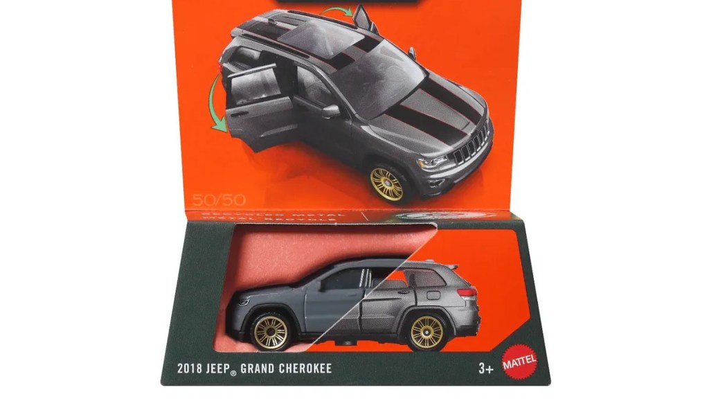 This gray version with black racing stripes is an interesting look, especially when paired with the gold wheels. I can’t find any similar-looking special edition Grand Cherokee that it was based on, so I’m not sure what the inspiration was for this deco. It’s not my favorite look, but I’m holding out hope that this version might at least solve the debut version’s lack of rear detailing. If it doesn’t, I’ll be doubly upset by the racing stripes!