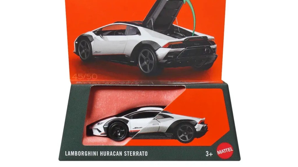 The Huracan Sterrato was my favorite Moving Parts of last year, so I’m stoked to see it returning for a recolor so quickly! Technically, this is the third version, since it also recently saw a premium Collectors release, but that version felt let down by its premium wheels and unnecessarily busy deco. This looks to be a solid return-to-form for this casting, with a similar deco and the same wheels as that original green Moving Parts version. I’m still hoping to see a clean yellow Sterrato someday, but I’ll also pick up this white version in a heartbeat.